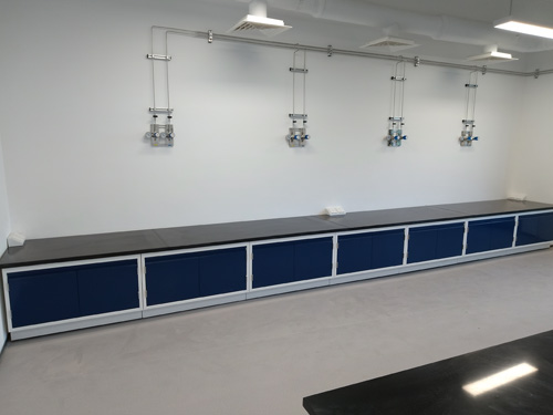 3.項目背板:中心地方臺中心(柜門正反面)為專用設備半層,櫥柜后側有可移動式檔板,使用隱藏從大理石地面留有或天花吊頂板引入的功能柱到測量儀器大理石臺面的電、氣濾油器,可在不需隨便方式的環境下走進維修培訓區域。